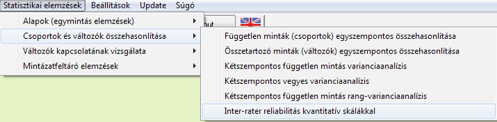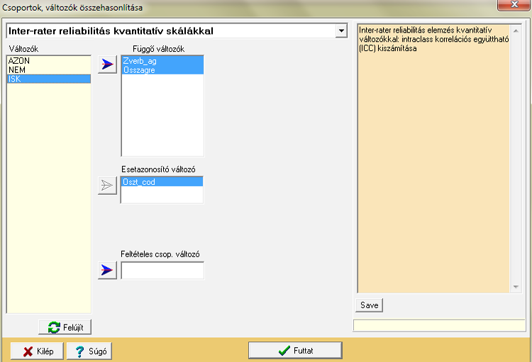 Az elemzést ROPstatban hajtjuk végre – hasonló eredmények az SPSS-ből is kiszedhetők, azonban az újabb SPSS programcsomagok egészen más megközelítést alkalmaznak e kérdés mögött megbúvó statisztikai probléma kiküszöbölésére.