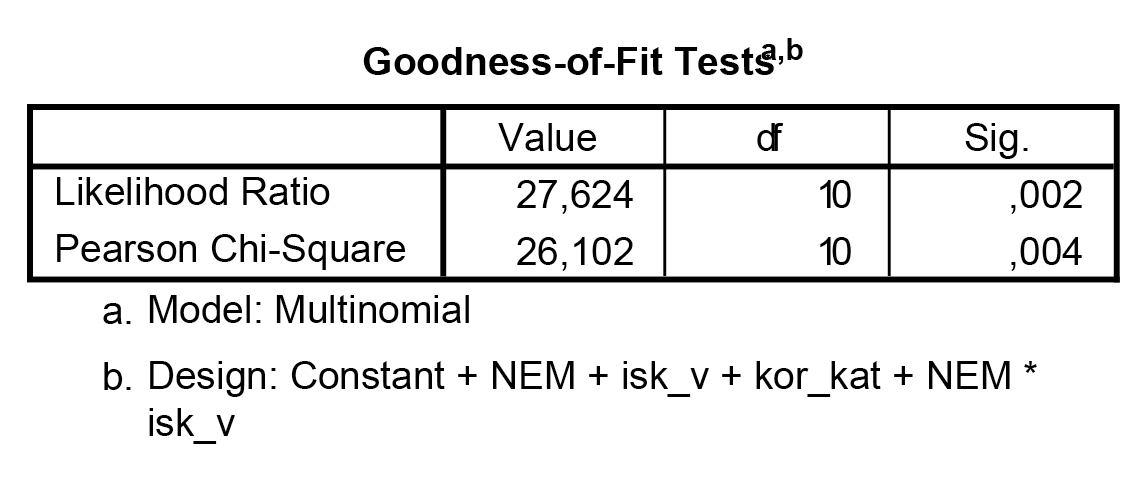 A modell illeszkedését khi-négyzet statisztikával ellenőrizzük. |