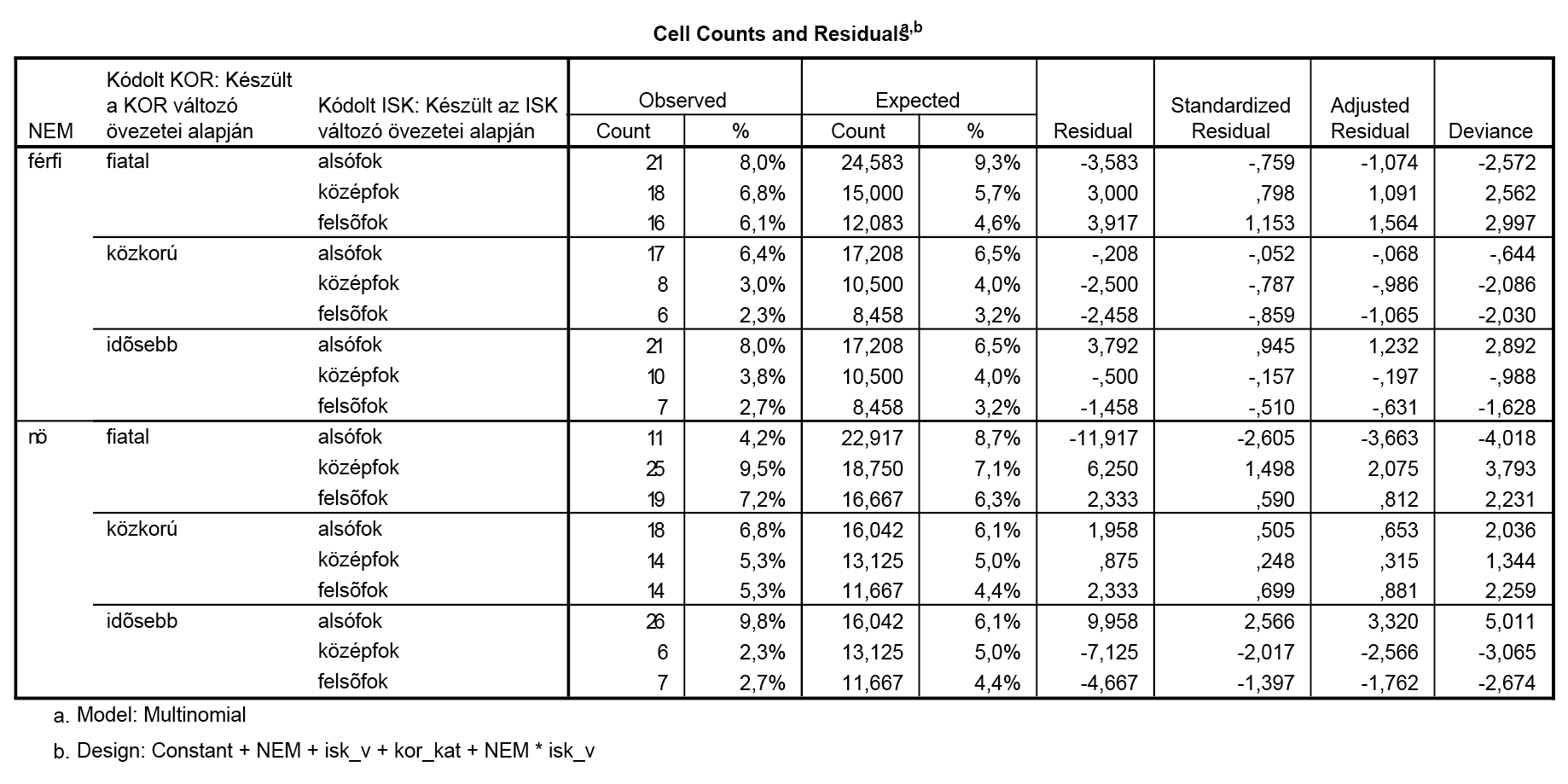 5. A loglineáris modell illeszkedését is ANOVA táblázattal ellenőrizzük. |