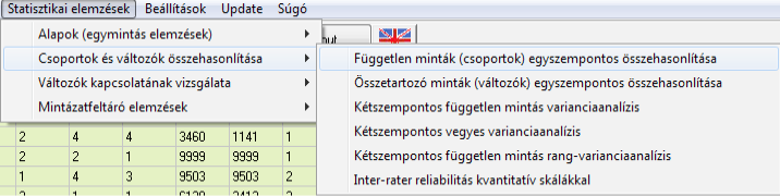 Az elemzést az egyszempontos varianciaanalízis menüpontban találhatjuk meg: