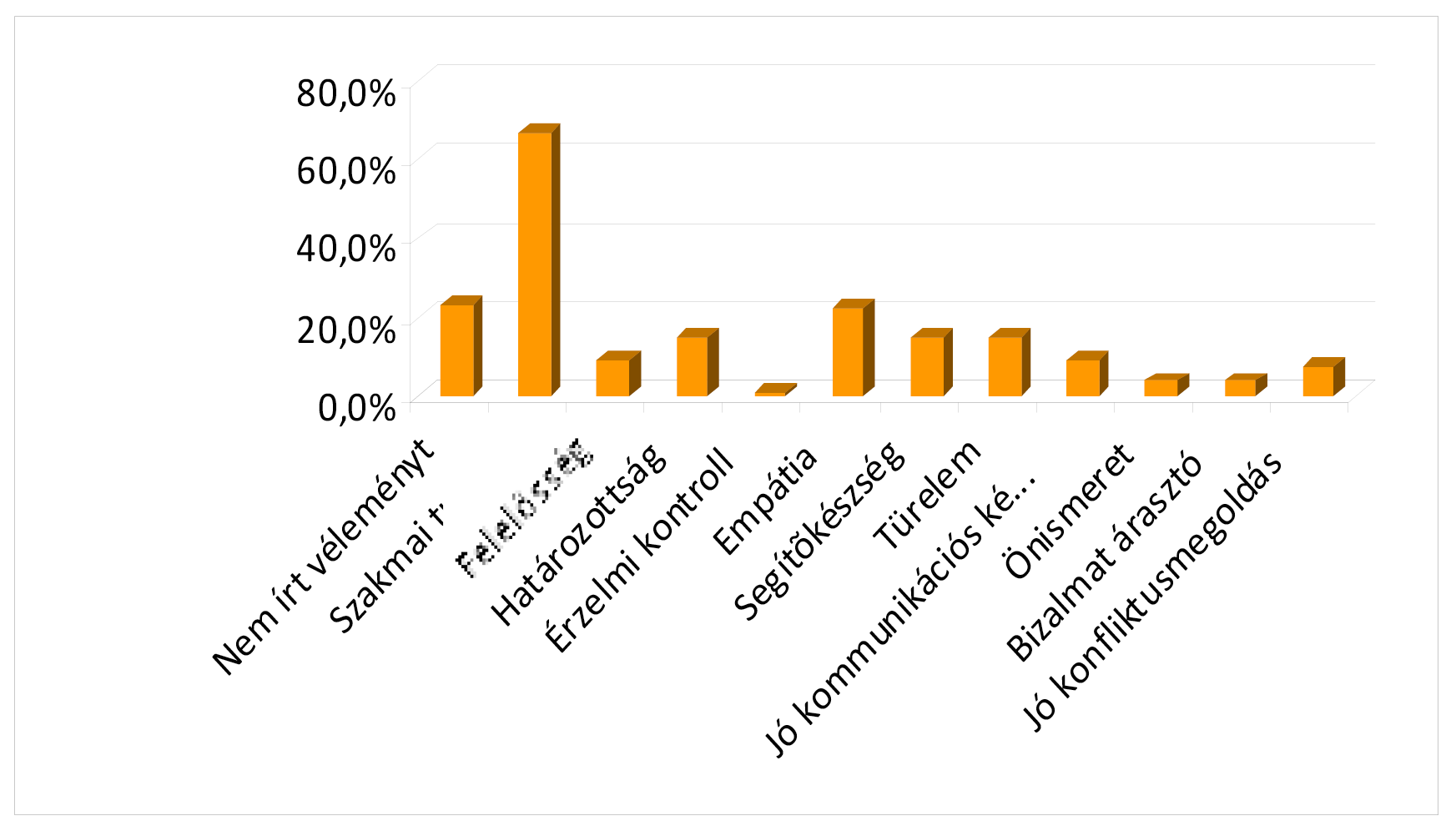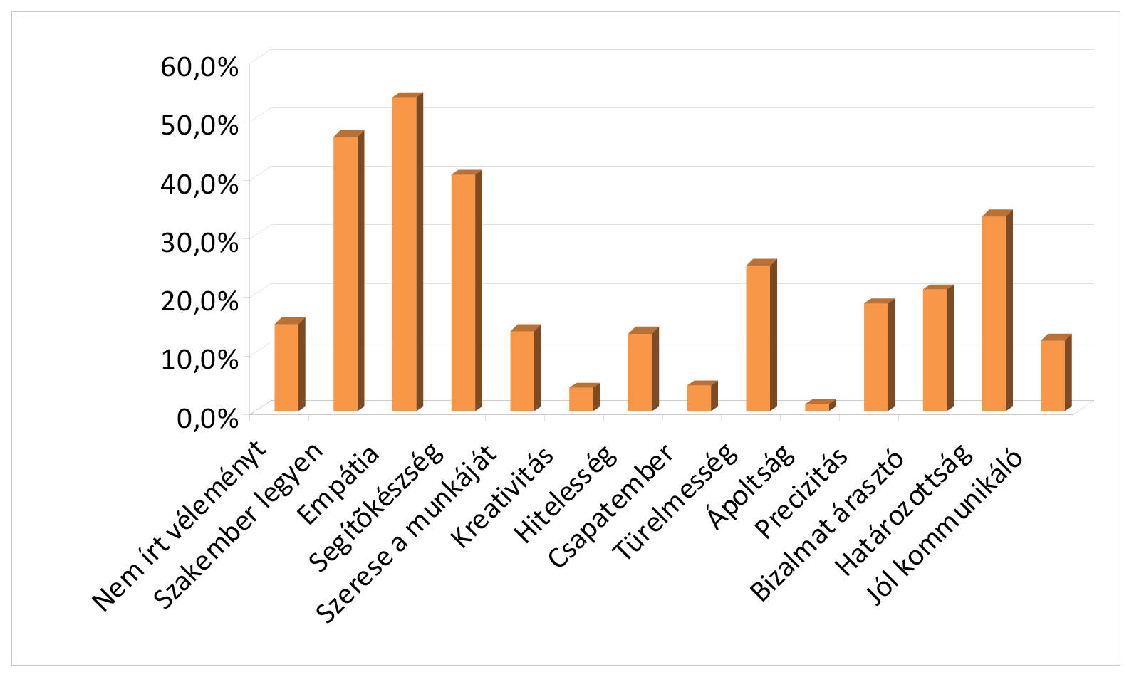 A következő, 3. ábrán felsorolást láthatunk arról, hogy véleményük szerint milyen a jó szakember. Nyitott kérdésként, a tartalomelemzés után a következő válaszlehetőségeket kaptuk.