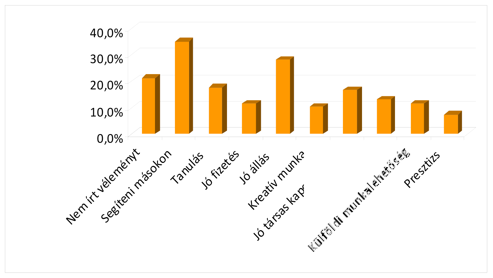 A hallgatók ötöde nem is fogalmazta meg erről véleményét, kevés ismerettel rendelkeznek. Akik gondolkodtak a témáról, azoknál a segítőkészség, a biztos álláslehetőség fordul elő leggyakrabban. Sajnos kevés ötletük volt arra vonatkozólag, hogy miért előnyös ezt a szakmát választani. Ez nehezíti a hatékony szakemberré válást, és a mentális egészség megőrzést is.