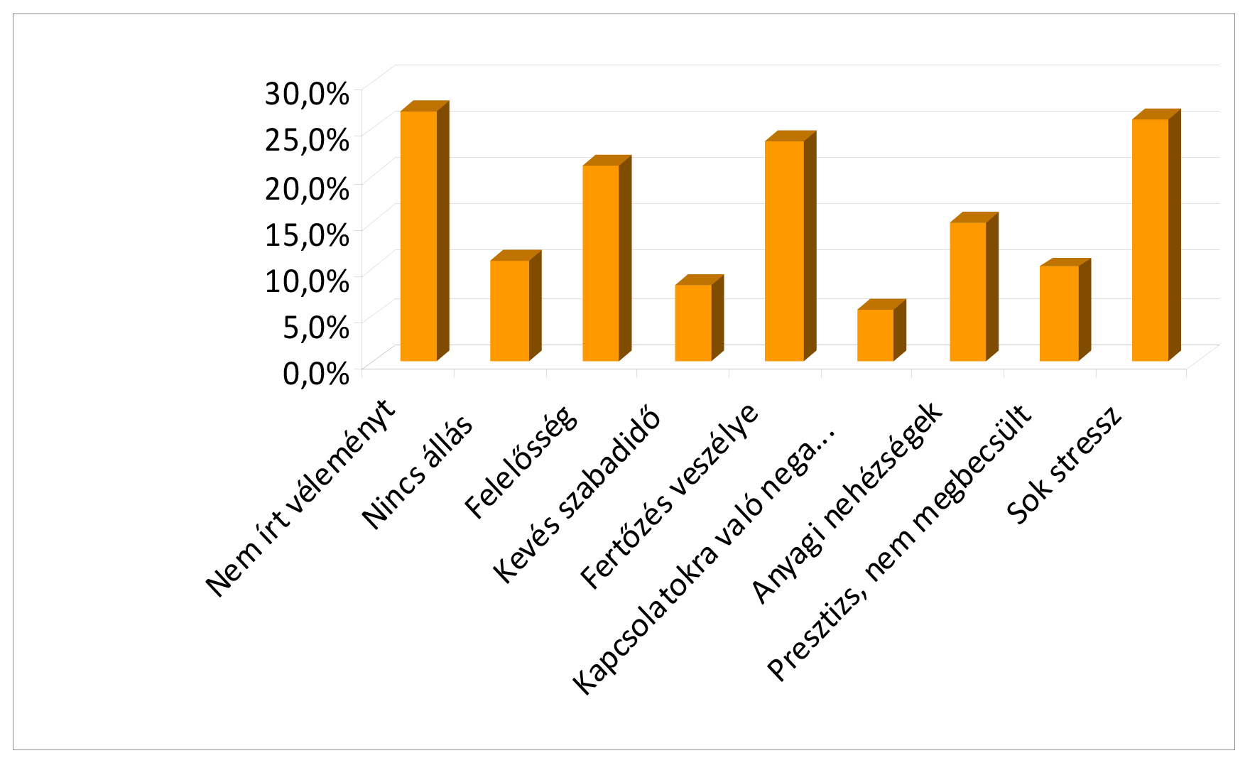 Kevés elképzelésük van a nehézségekről, milyen problémás helyzetekkel kell megküzdeniük. A presztízs és a fizetés alacsony voltával, a fertőzésveszély lehetőségeivel néhányan tisztában vannak. A megkérdezettek negyedénél jelenik meg az a tudás, hogy a választott szakma felelősséggel és sok stresszel jár. Az erről való ismeret fontos kiindulópontja lehet a mentális egészség megőrzésének.