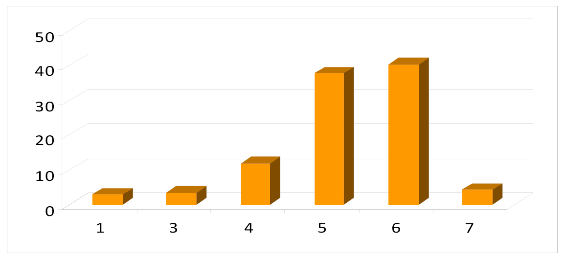 Az Életstílus elégedettség skála (LSS) hallgatói eredményeit mutatja a 12. ábra. A saját életről kialakított vélemény, (7 fokú skálán) a szubjektív jólét a hallgatóink esetében jó színvonalúnak mondható.