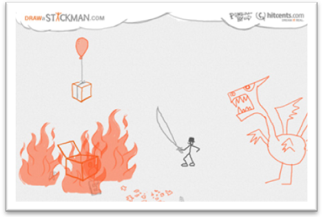 A kreativitás fejlesztésére ajánlott weboldalak közül legjobban a Draw a Stickman oldalt szeretném kiemelni. A feladat látszólagos egyszerűsége ellenére óriási siker a diákoknál, hiszen valami, amit ők rajzolnak a szemük láttára kel életre. Szó szerint tátott szájak kísérik az első bemutatását. Sajnos minden csoda három napig tart, és ez igaz erre az oldalra is, hiszen a 2 történet mindig ugyanaz, és a nagy rácsodálkozás addig tart, míg 2-3 alkalommal ki nem próbálgatják, hogy néz ki a cselekmény, ha mondjuk Spongyabob a főszereplő. Az oldal alapvető utasításokat ad, amelyek megértése nagy sikerélmény a kezdő szintű diákoknak is. Mindezek ellenére, ha van rá pár percünk az órán, ne sajnáljuk rá az időt, hiszen amellett, hogy felkeltjük a diákok figyelmét, motiváljuk őket, még szigorú értelemben vett tanulásra is lehet használni, hiszen mondjuk, írhatnak a diákok fogalmazást a történetről vagy függő beszédben elmondhatják, mik voltak az utasítások.