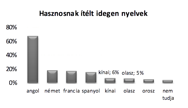 A grafikon adataiból (1. ábra) látható, hogy szerte Európában az angol vezető szerepe megkérdőjelezhetetlen, és túlzás nélkül ki lehet jelenteni, hogy a kontinensen ma már betölti a lingua franca szerepét úgy is mint a leginkább választott, leghasznosabbnak ítélt idegen nyelv. Ha az anyanyelvi beszélők számára vetünk egy pillantást, azt látjuk, hogy a német anyanyelvűek 16%-ot, az angol és az olasz anyanyelvűek 13-13 %-ot, a franciák 12%-ot képviselnek, a választott idegen nyelvek vonatkozásában viszont nem ilyen csekély, 1-2 százalékos különbséget tapasztalunk. Az ilyen különbözőségek miatt is érdemes tisztázni, hogy egy nyelv az anyanyelvi beszélői számától függetlenül is beletartozhat a kevéssé ismert és tanított nyelvek csoportjába.