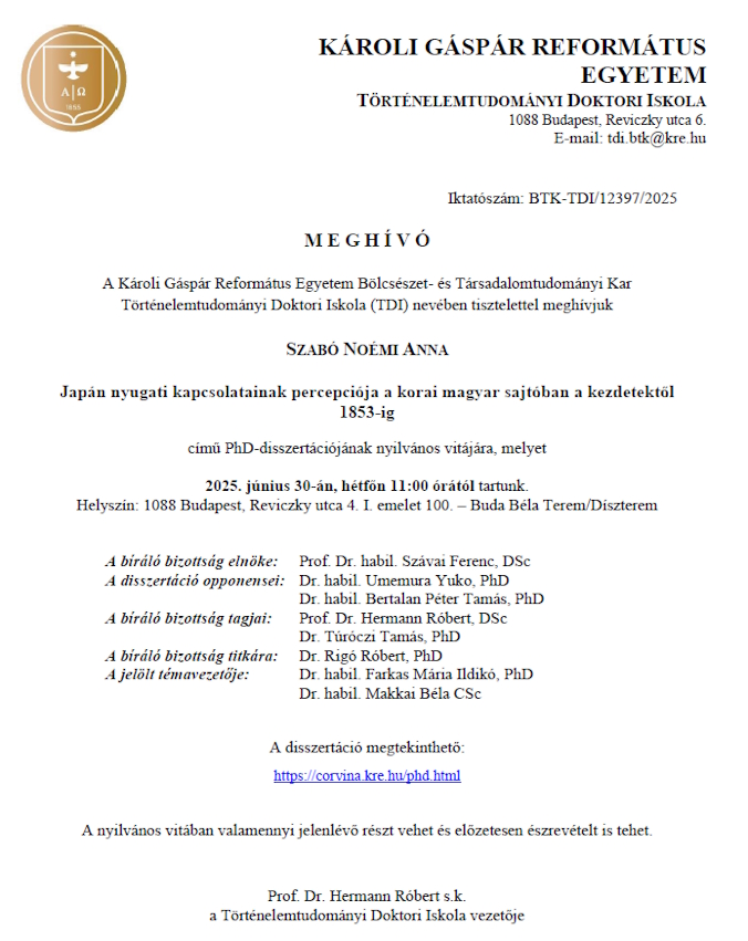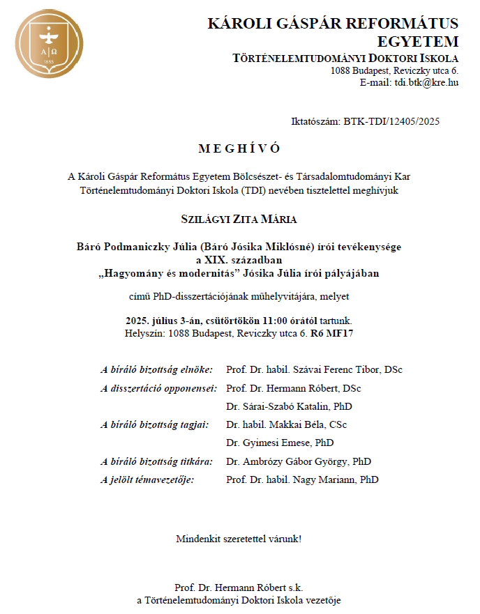Ha vonzónak és érdekesnek tartja az ajánlatunkat, jelentkezzen hozzánk és a Doktori Iskola magas színvonalú képzést, jó hangulatú órákat és a magyar történelemtudományban alapos ismeretek megszerzését biztosítja Önnek, ami elengedhetetlen a jövő történészei számára.