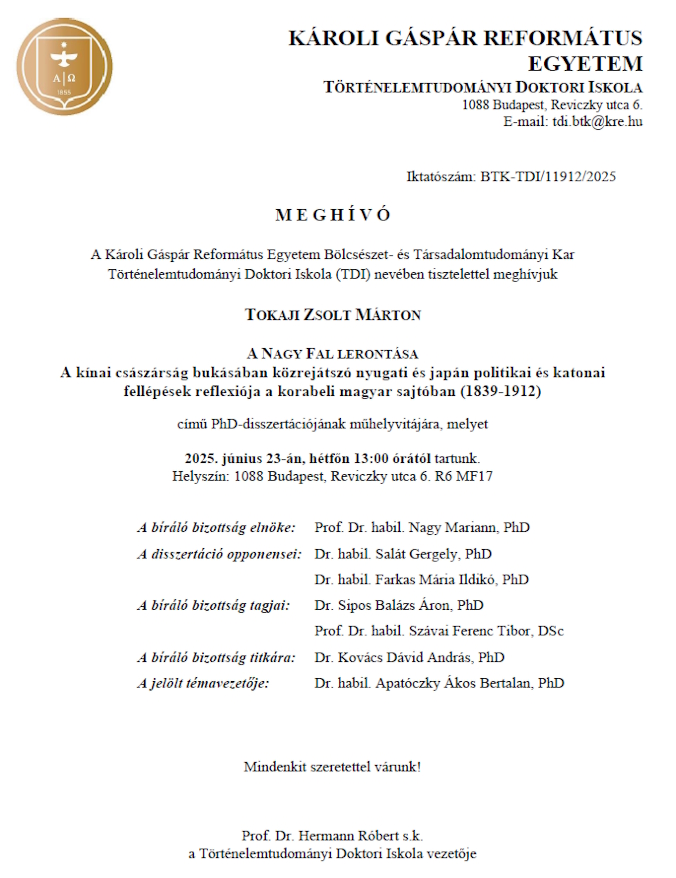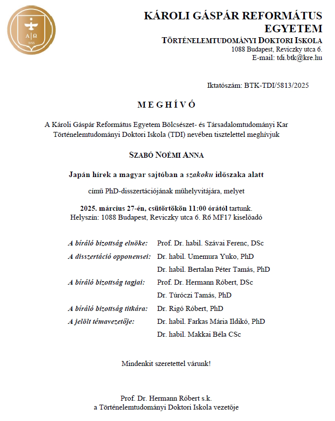 Ha vonzónak és érdekesnek tartja az ajánlatunkat, jelentkezzen hozzánk és a Doktori Iskola magas színvonalú képzést, jó hangulatú órákat és a magyar történelemtudományban alapos ismeretek megszerzését biztosítja Önnek, ami elengedhetetlen a jövő történészei számára.