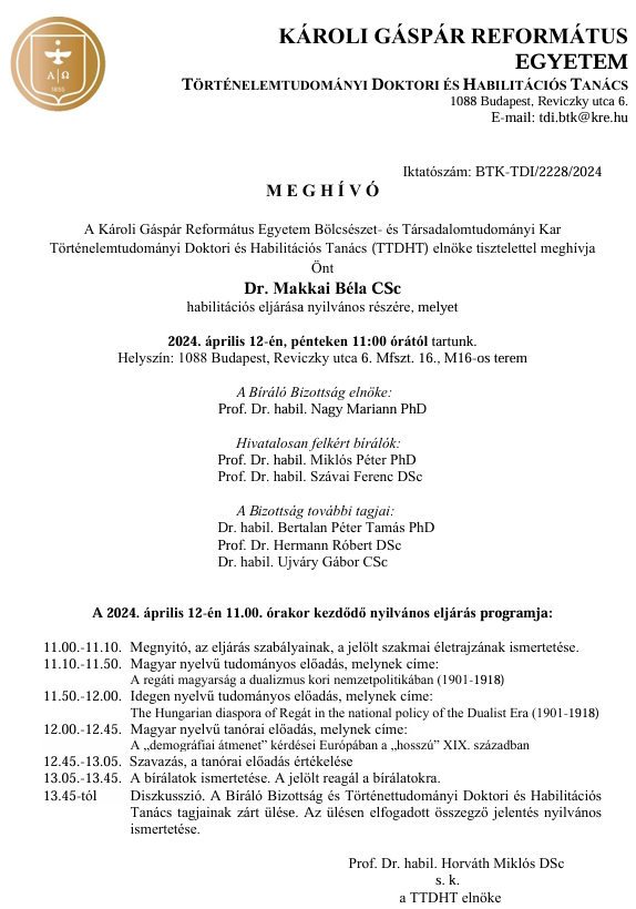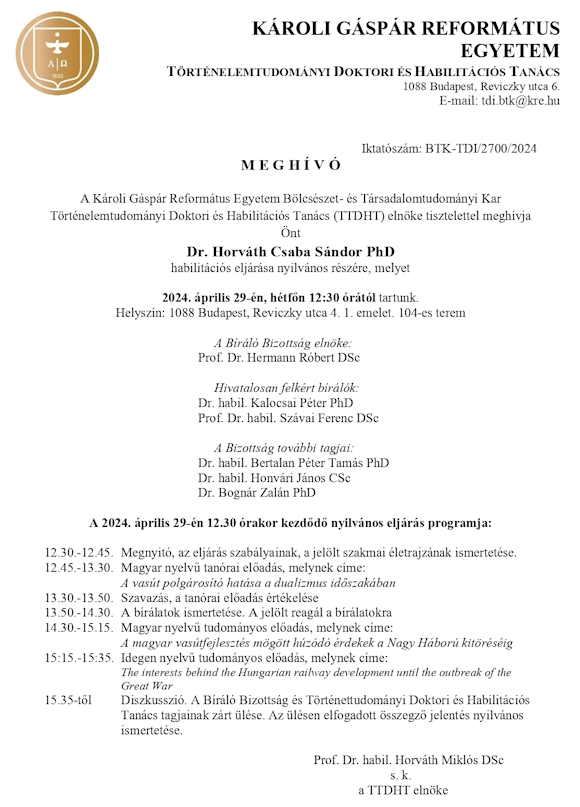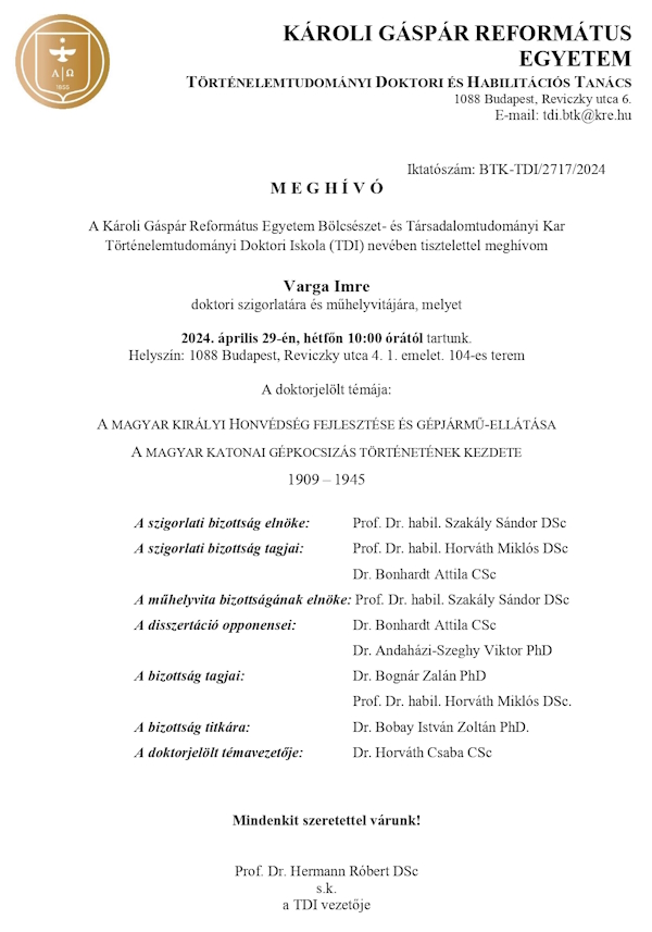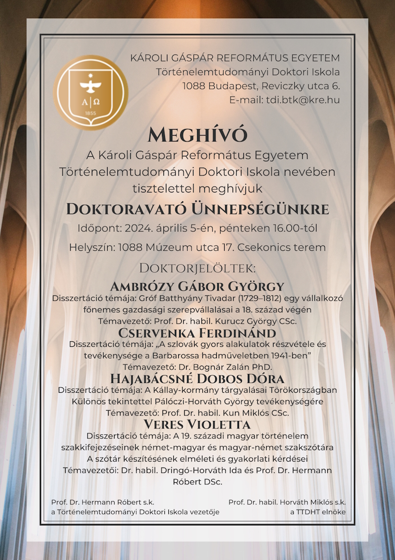 Történelemtudományi Doktori Iskola (TDI) nevében tisztelettel meghívjuk